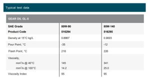 • Oli Gigi GL-5 memberikan perlindungan terhadap keausan gigi pada aplikasi gigi non-kritis. Bahan dasar yang sangat murni