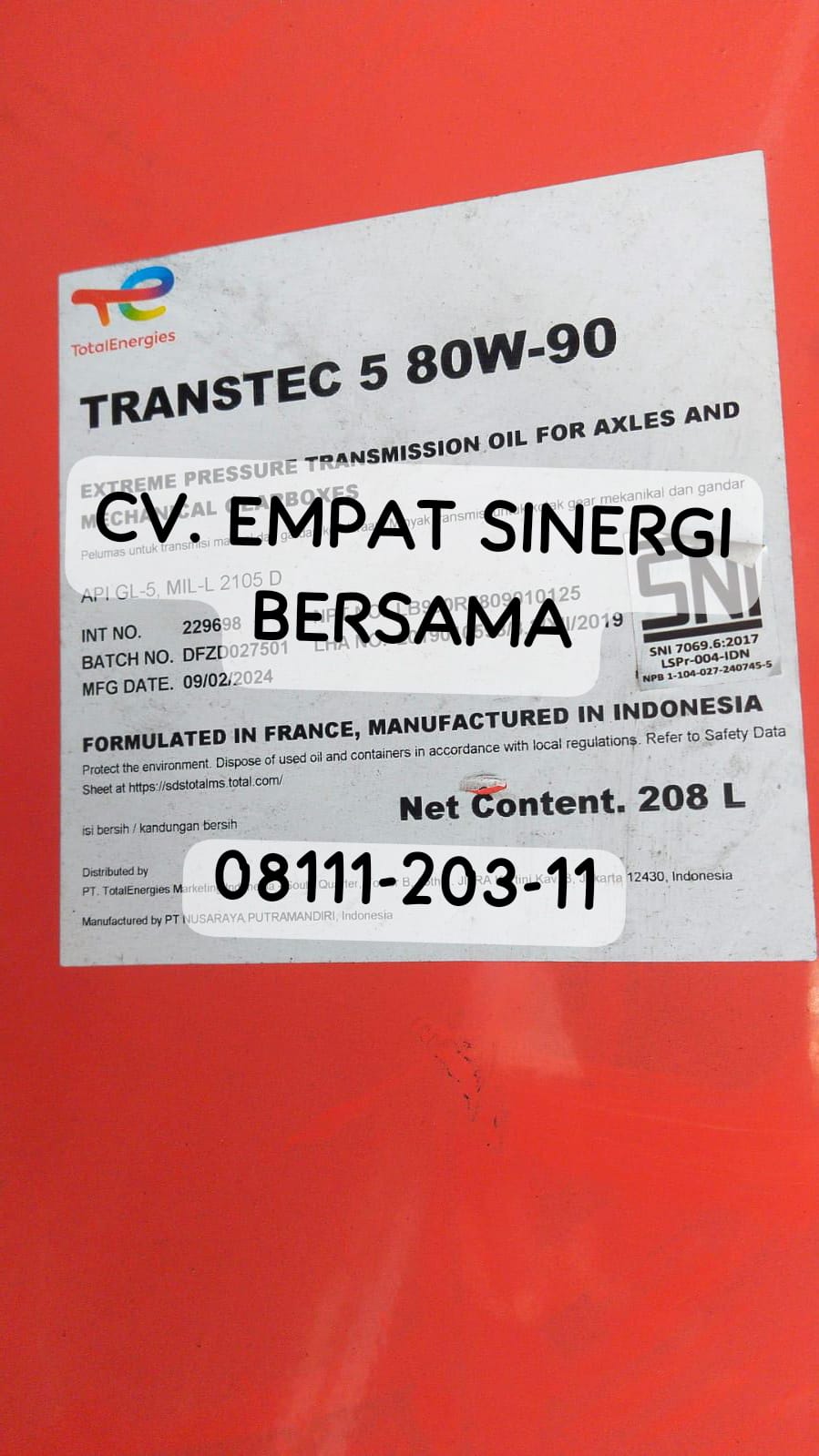 tags: produk oli TOTAL, jual oli TOTAL, TOTAL Lubricants, Jual Oli industri, Jual Oli TOTAL, Produk TOTAL, Pusat Oli Dan Grease, Pusat Oli TOTAL, Supplier Oli Industri, Supplier Oli TOTAL, Supplier TOTAL Indonesia, pelumas mesin TOTAL,harga oli pelumas TOTAL, harga pelumas oli TOTAL per drum, harga pelumas TOTAL Jakarta, harga oli TOTAL per pail, jual oli TOTAL murah, jual pelumas TOTAL ecer, jual oli transmisi pelumas Total Transtec 5 80W-90 GL-5